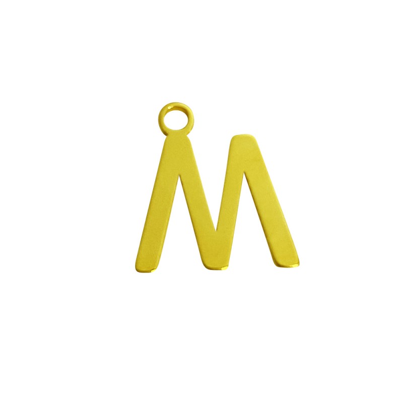 Colgante mini letra M en plata de ley 925, bañado en oro de 18k. Fabricado en España.