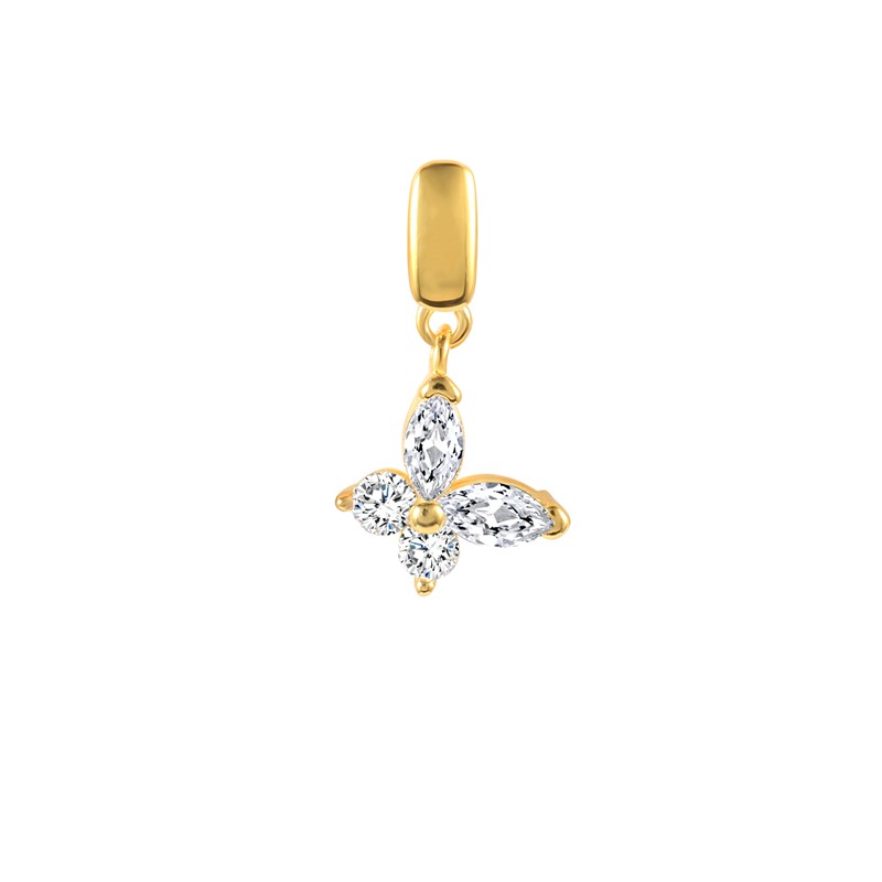 Colgante mariposa con circonita blanca en plata de ley 925, bañado en oro de 18k.