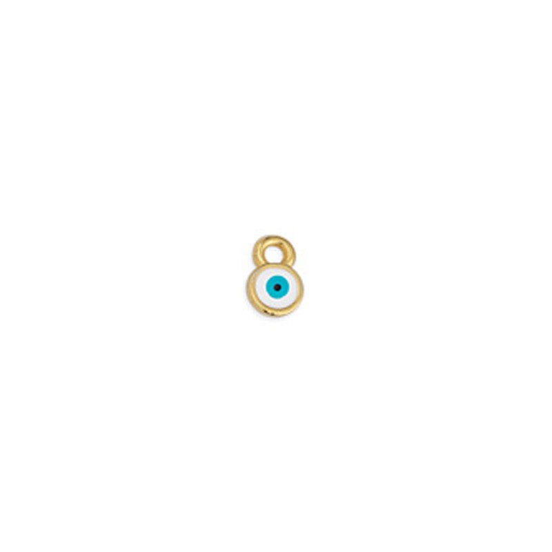 Colgante mini ojo blanco 5mm zamak baño oro 24k.