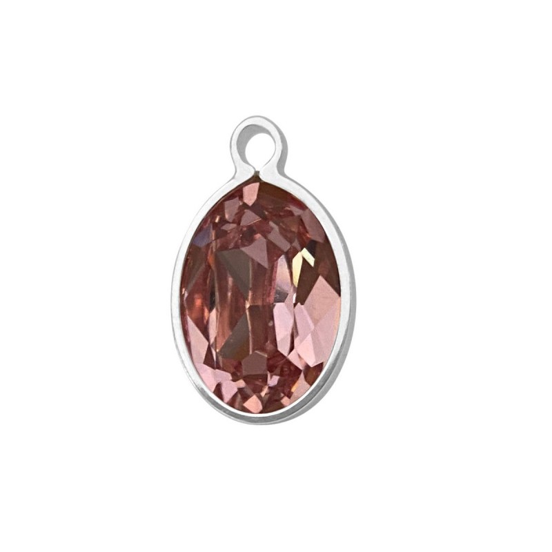 Colgante oval de cristal en color rose biselado en plata de ley 925. Fabricado en España.