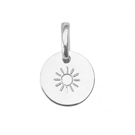 Colgante sol redondo en plata de ley 925, fabricado en España. Viene con una anilla soldada también plata de ley 925.