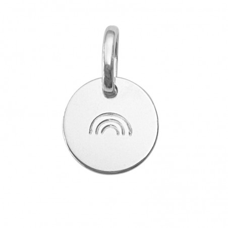 Colgante arcoiris redondo en plata de ley 925, fabricado en España. Viene con una anilla soldada también plata de ley 925.