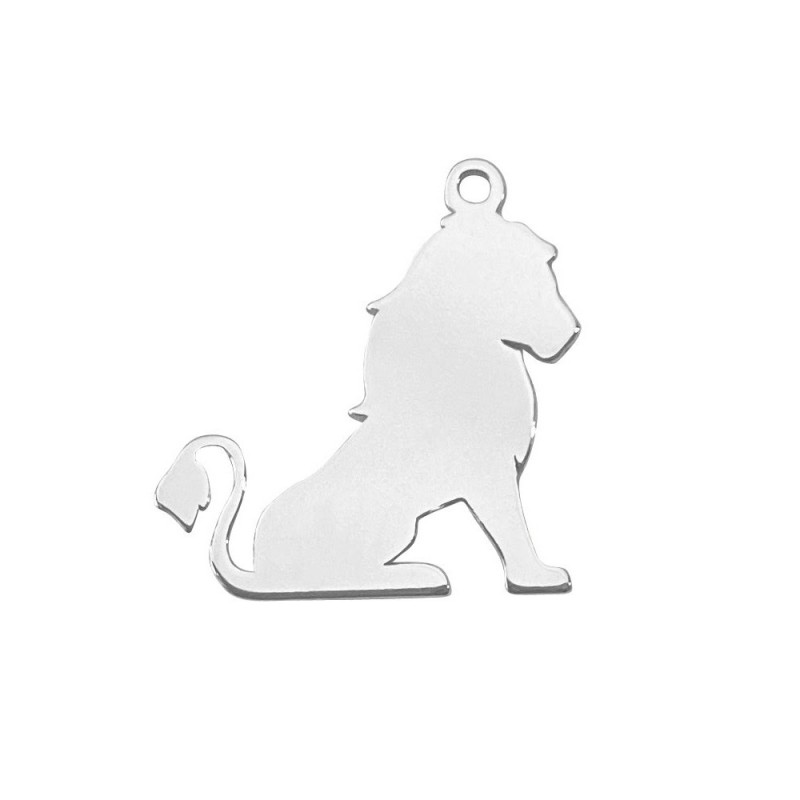 Colgante león con asa de 19 mm en plata de ley 925. Fabricado en España.