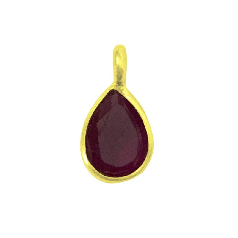 Colgante lágrima cuarzo granate biselado 8mm en plata baño oro
