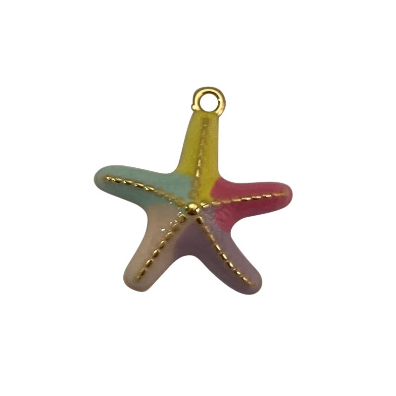 Colgante estrella de mar esmaltado en color sirena de zamak en baño de oro.