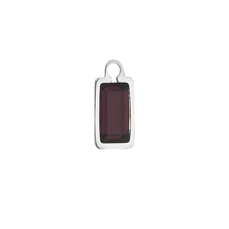 Colgante rectangular con cristal Swarovski en color Amethyst con asa en plata de ley 925 fabricado en España.