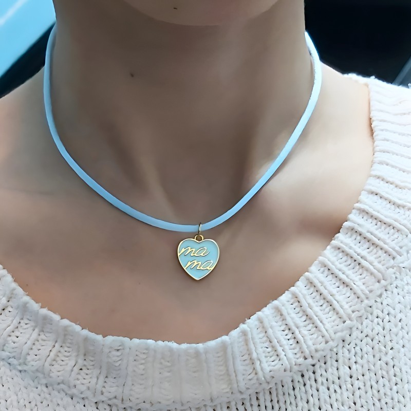 Colgante corazón mamá esmaltado en color azul. Zamak con baño de oro 24k.