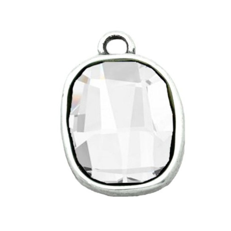 Colgante con asa en zamak con baño de plata con cristal Swarovski 4795 de 14 mm. en color Crystal. Le recomendamos pegar ambas piezas con nuestro pegamento especial para joyería con referencia 7405, ya que no vienen pegadas.