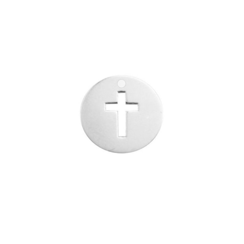 Colgante Charm redondo cruz. 8 mm con taladro 0.9 mm