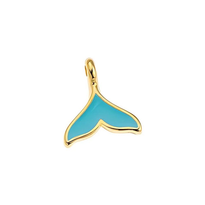 Colgante cola de ballena esmalte azul turquesa. Zamak con baño de oro 24k.