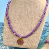 Colgante concha esmalte perla lila. Zamak con baño de oro 24k.