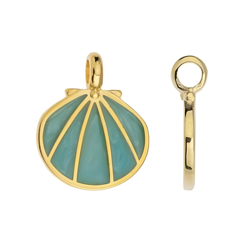 Colgante concha esmalte perla turquesa 19mm. Baño oro.
