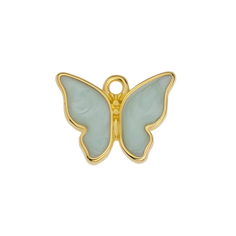 Colgante mariposa esmalte perla mint. Zamak con baño de oro 24k.