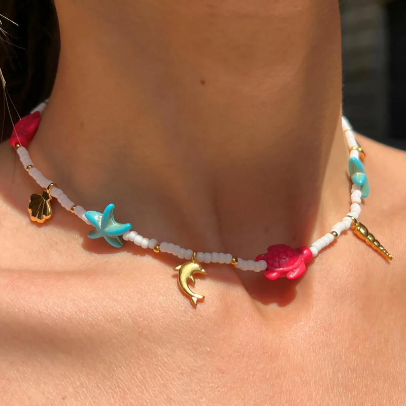 Puede crear una bonita pulsera o collar introduciendo por el taladro uno de nuestros cordones o cadenas iguales o inferiores a 1,5mm de grosor.