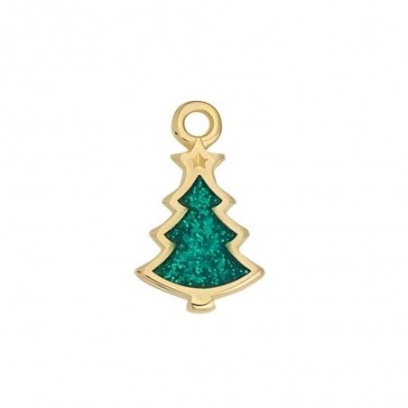 Colgante árbol navideño con glitter en color verde. Zamak con baño de oro 24k.