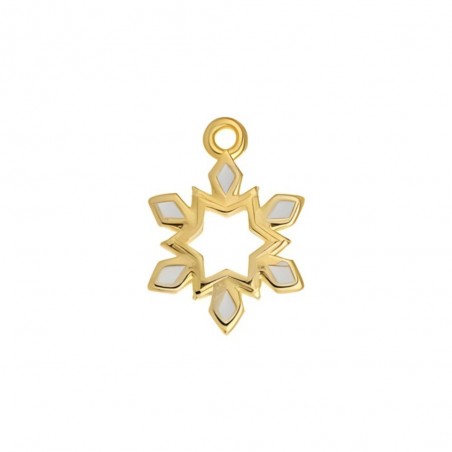 Colgante copo de nieve esmalte blanco 17,4mm. Baño oro.