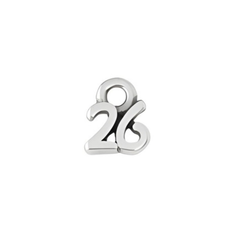 Colgante número 26 de 6,3mm. Zamak con baño de plata.