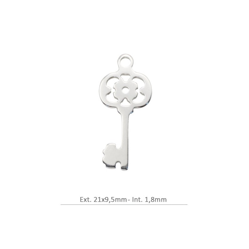 Colgante llave calada con anilla en plata de ley 925. Fabricado en España.
