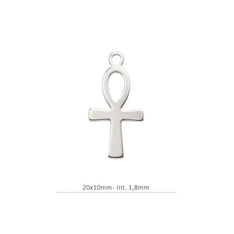 Colgante cruz egipcia o símbolo 'Ankh' con asa en plata de ley 925. Fabricado en España.
