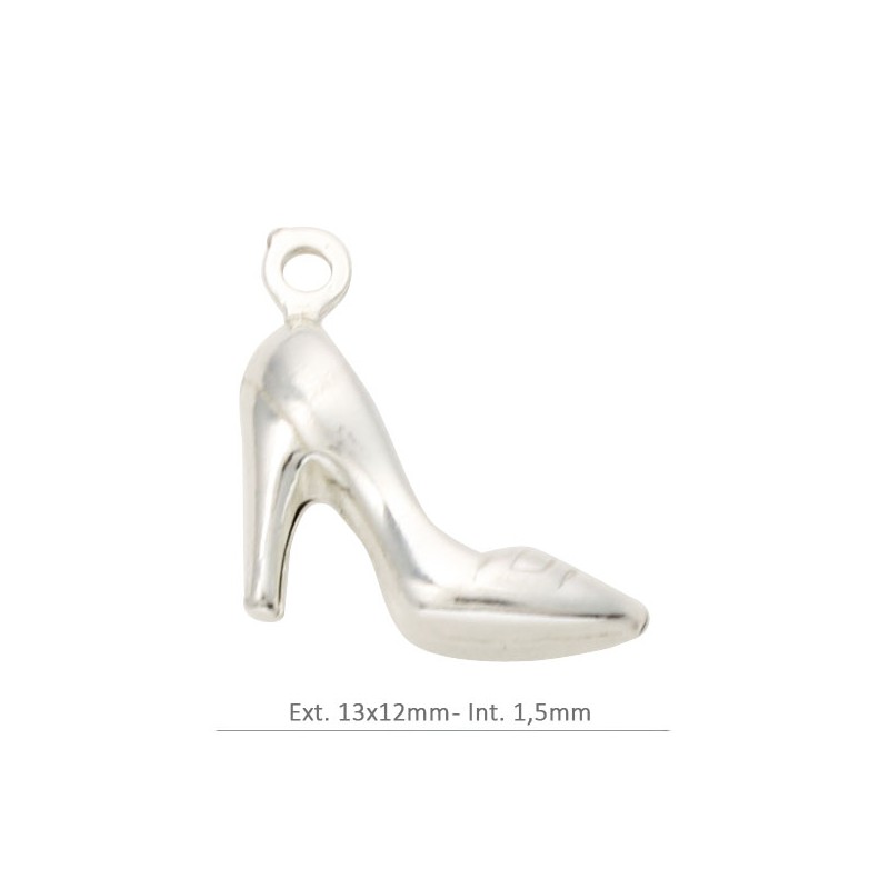 Colgante zapato de tacón en plata de ley 925. Fabricado en España.