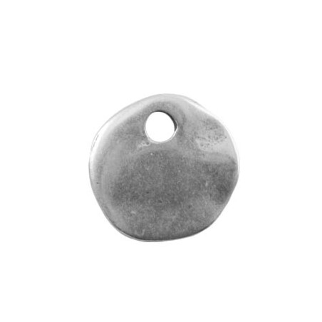 Colgante moneda golpeada en zamak con baño de plata. La bolsa contiene 4 unidades. Tiene un tamaño de 13 mm. y el taladro es de 2,5 mm.
