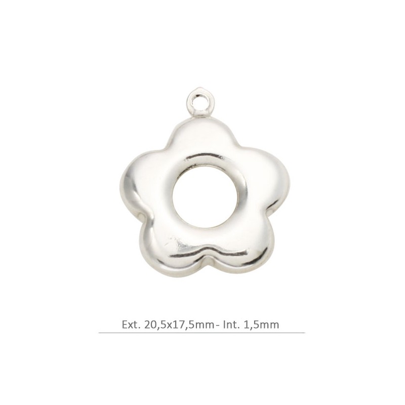 Colgante flor con anilla en plata de ley 925. Fabricado en España.