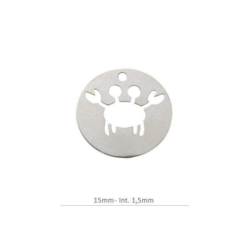 Colgante cangrejo con taladro en plata de ley 925. Fabricado en España.