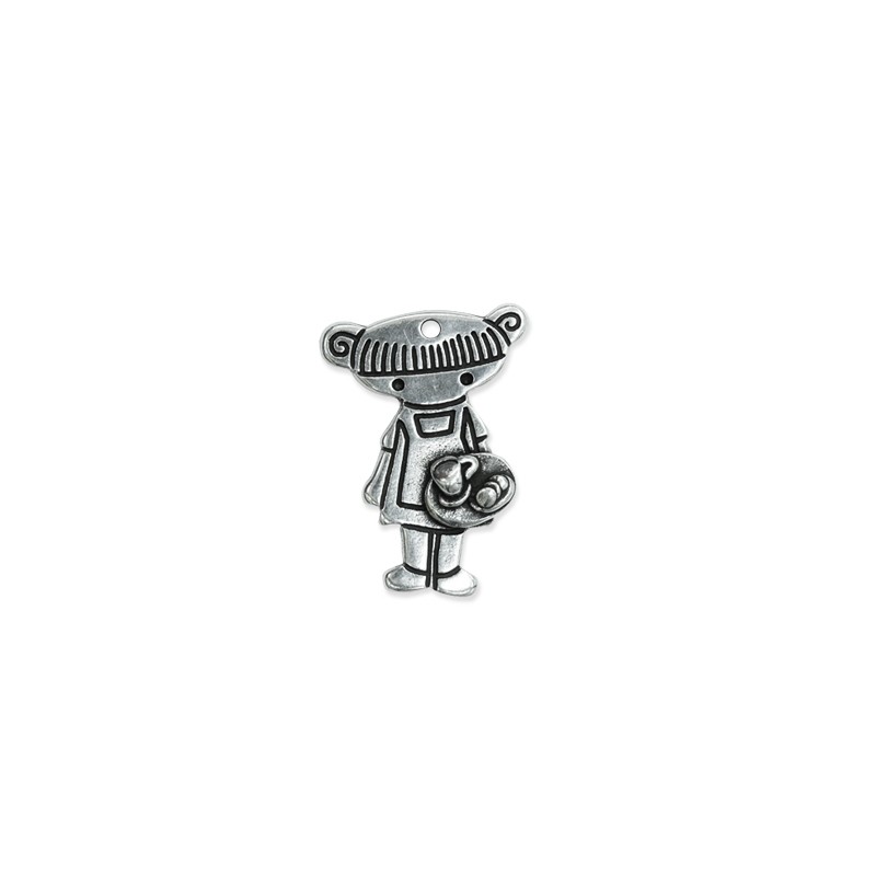 Colgante tamaño pequeño de muñeca lola camarera con taladro en zamak con baño de plata.