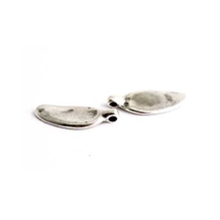 Entrepieza ala de mariposa pequeña con taladro en zamak baño de plata. La bolsa contiene 2 unidades. Tiene un tamaño de 17 mm. y un taladro de 2 mm.