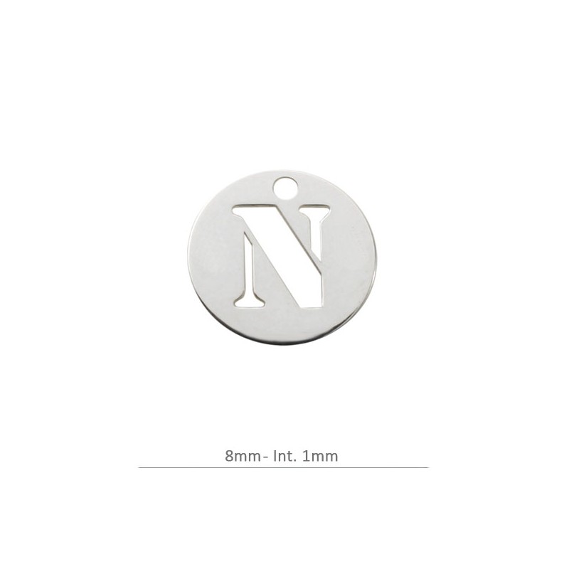 Colgante Charm redondo letra N. 8 mm con taladro 1.2 mm