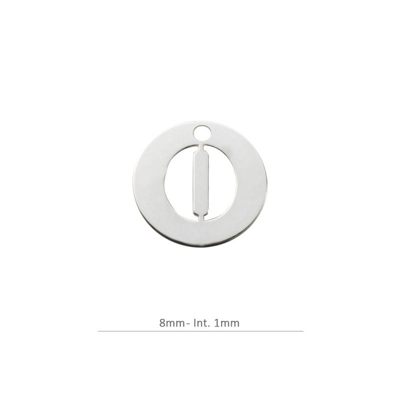 Colgante Charm redondo letra O. 8 mm con taladro 1.2 mm