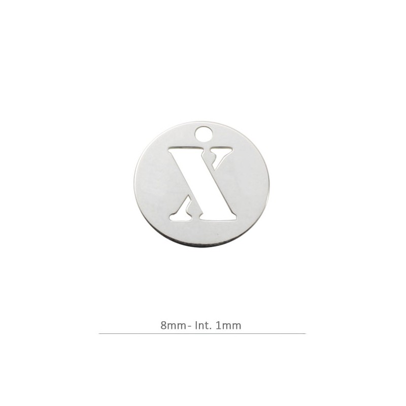 Colgante Charm redondo letra X. 8 mm con taladro 1.2 mm