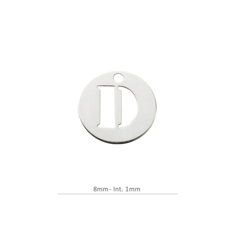 Colgante Charm redondo letra D. 8 mm con taladro 1.2 mm