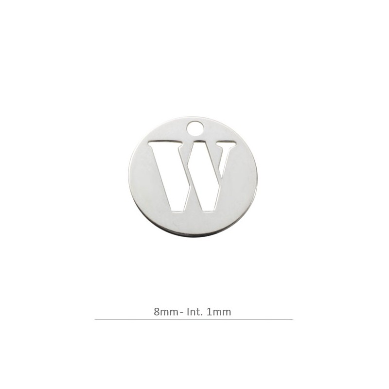 Colgante Charm redondo letra W. 8 mm con taladro 1.2 mm