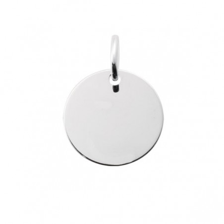 Colgante chapa redondo para grabar en plata de ley 925, fabricada en España. Viene con una anilla soldada también plata de ley 925. Es el tamaño mediano de chapas para grabar que hay disponible.