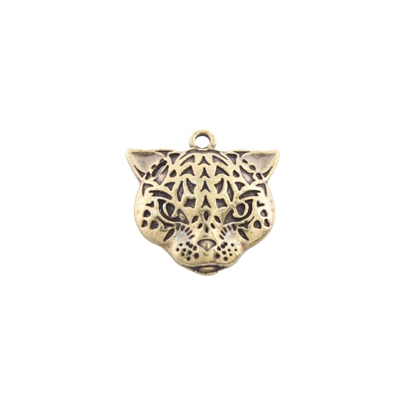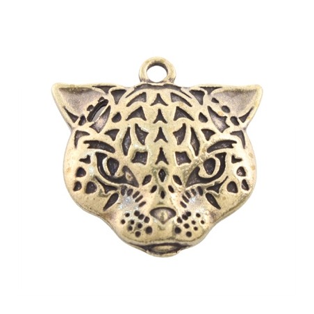 - Colgante tigre con taladro en zamak con baño en color oro viejo. - El tamaño es de 30x30 milímetros. - El precio es por unidad.