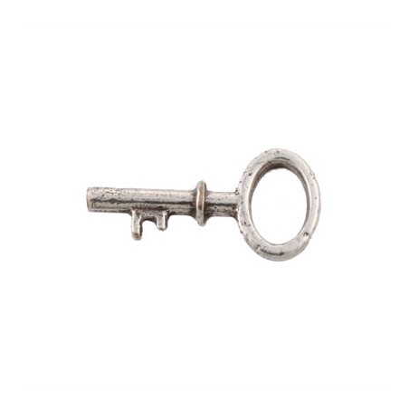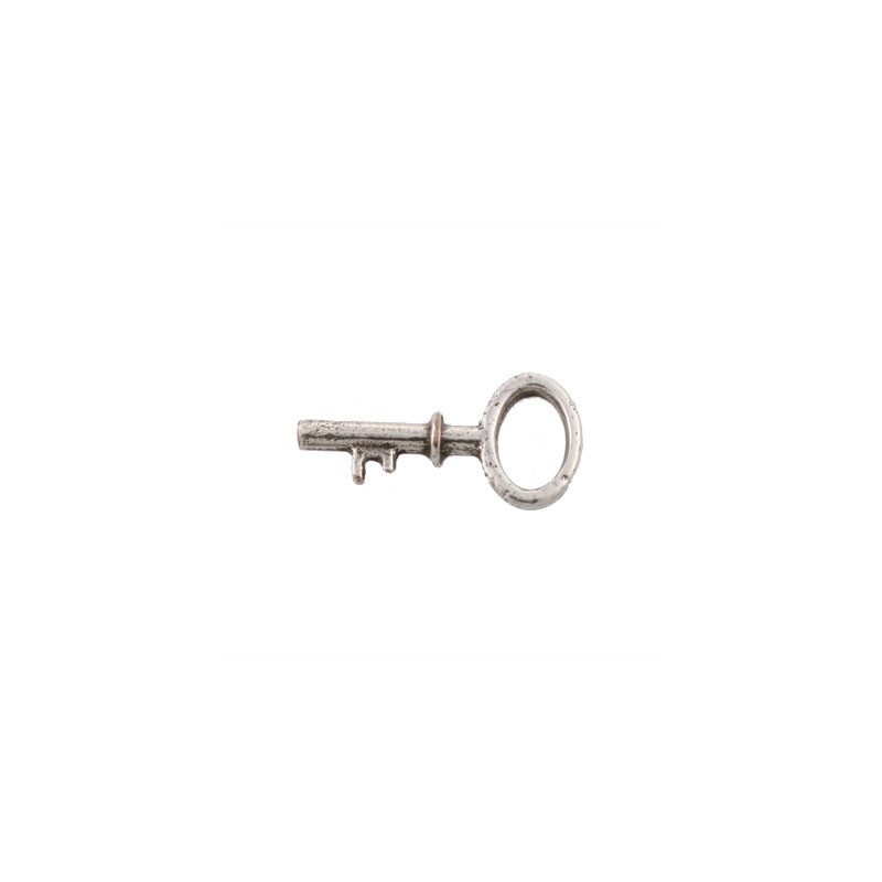 - Colgante llave en zamak con baño de plata. - El tamaño es de 19x10mm. - El precio es por bolsa y la bolsa incluye dos unidades.