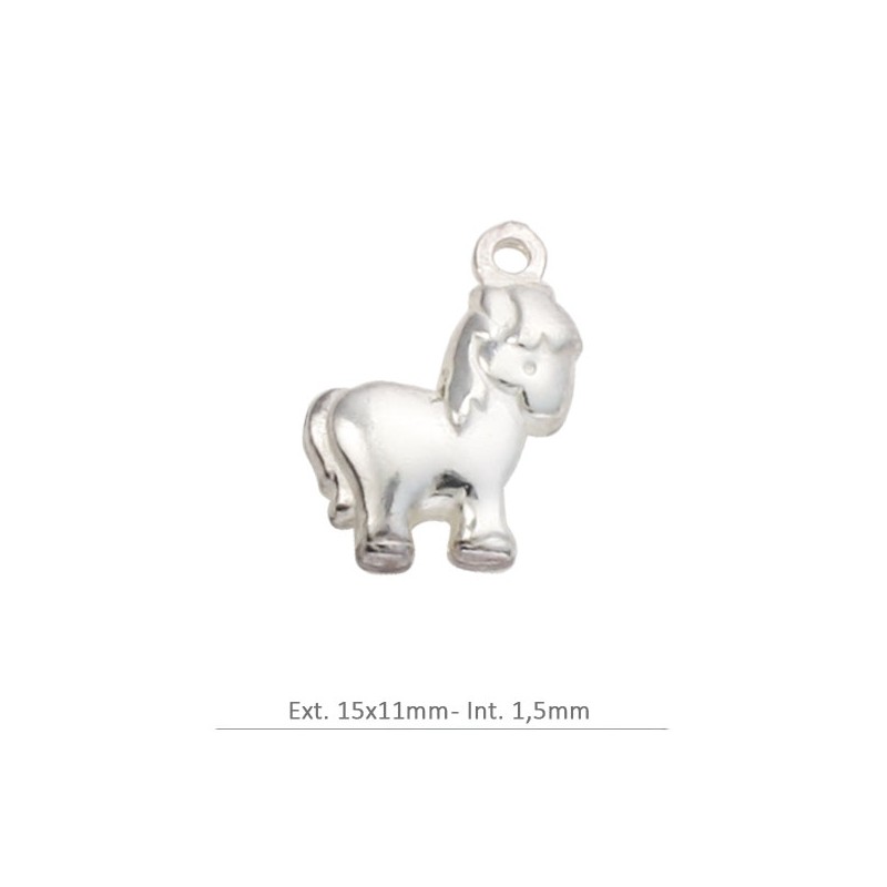 Colgante pony con anilla en plata de ley 925. Fabricado en España.