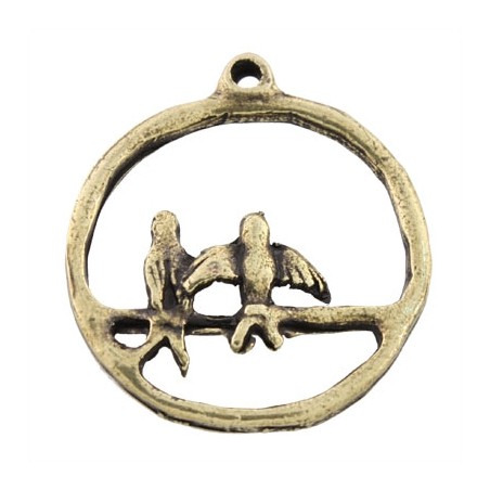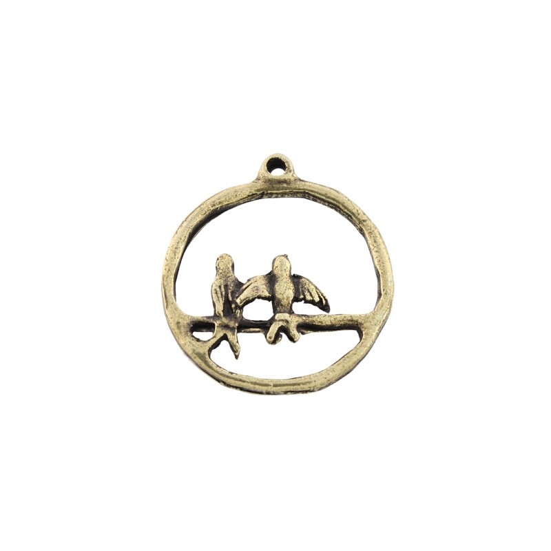 - Colgante pajaritos en zamak con baño en color oro viejo. - El tamaño es de 23mm. - El precio es por unidad.