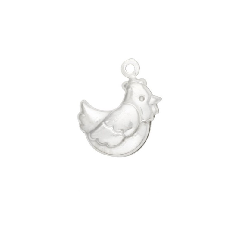 Colgante gallina con anilla en plata de ley 925. Fabricado en España.