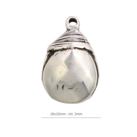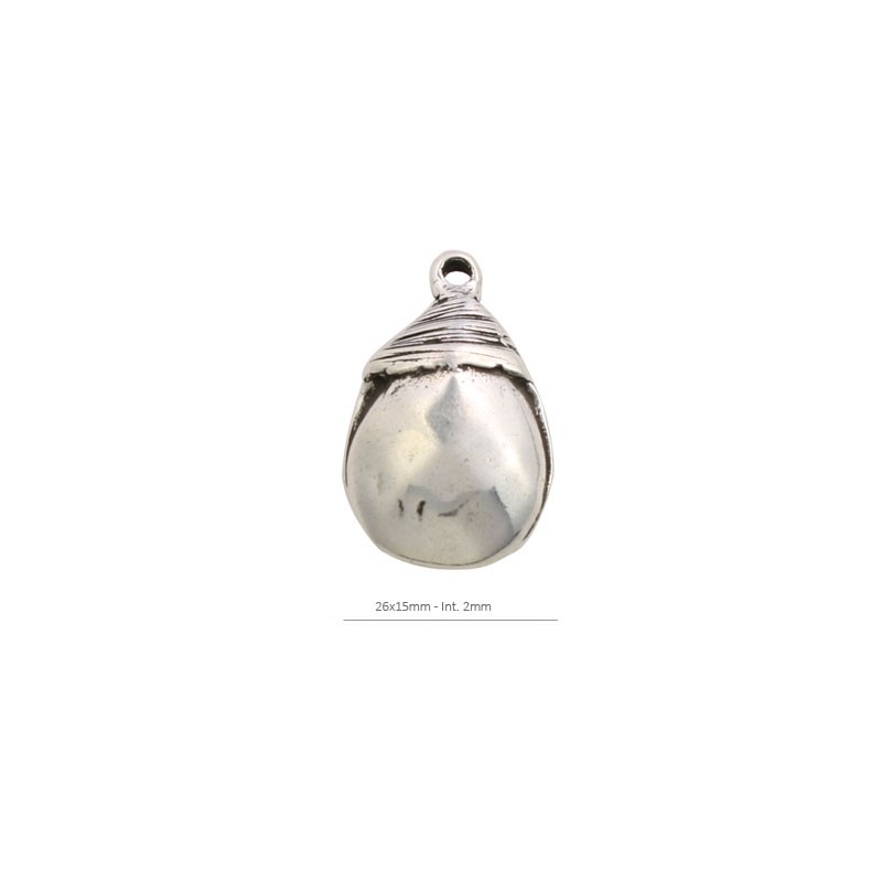 - Colgante de zamak con baño de plata. - El tamaño es de 26x15 milímetros y tiene un taladro de 2 milímetros. - El precio es por unidad.