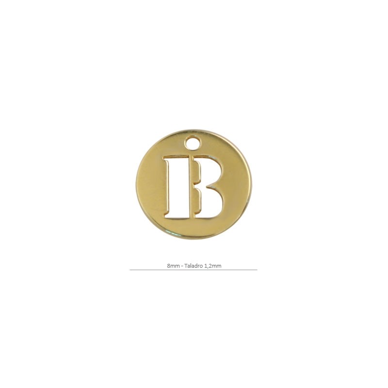 Colgante charm redondo letra Ben plata de ley 925 con baño de oro 18k. Fabricado en España.