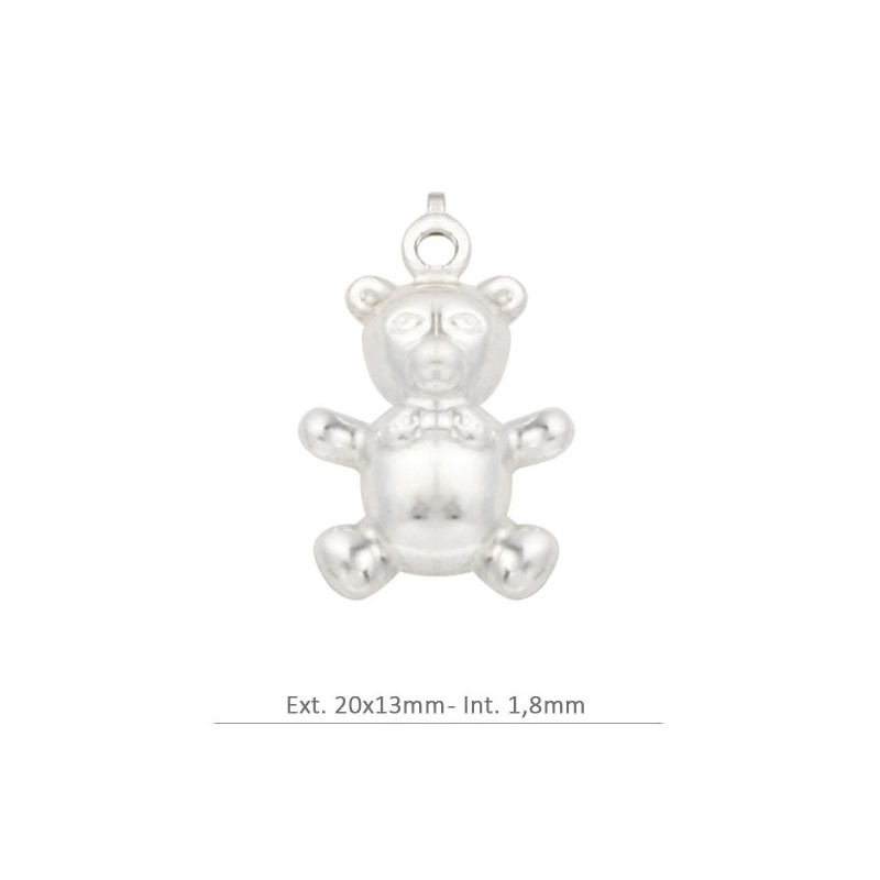 Colgante osito con anilla en plata de ley 925. Fabricado en España.