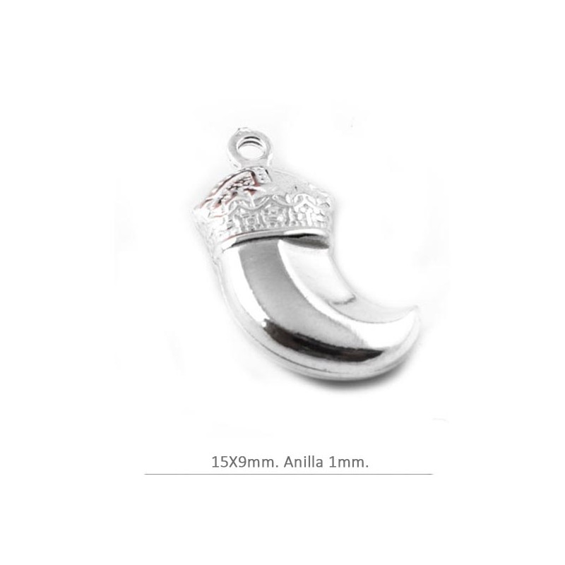 Colgante cuerno con anilla en plata de ley 925. Fabricado en España.