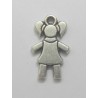 - Colgante niña con taladro transversal en zamak con baño de plata. - El tamaño es de 17x10 mm. y la anilla es de 2 mm. - El precio es por bolsa y la bolsa contiene 1 unidad.