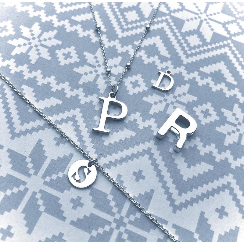 Colgante letra P en plata de ley 925. Fabricado en España.