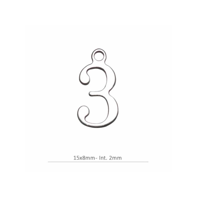 Colgante número 3 en plata de ley 925. Fabricado en España.
