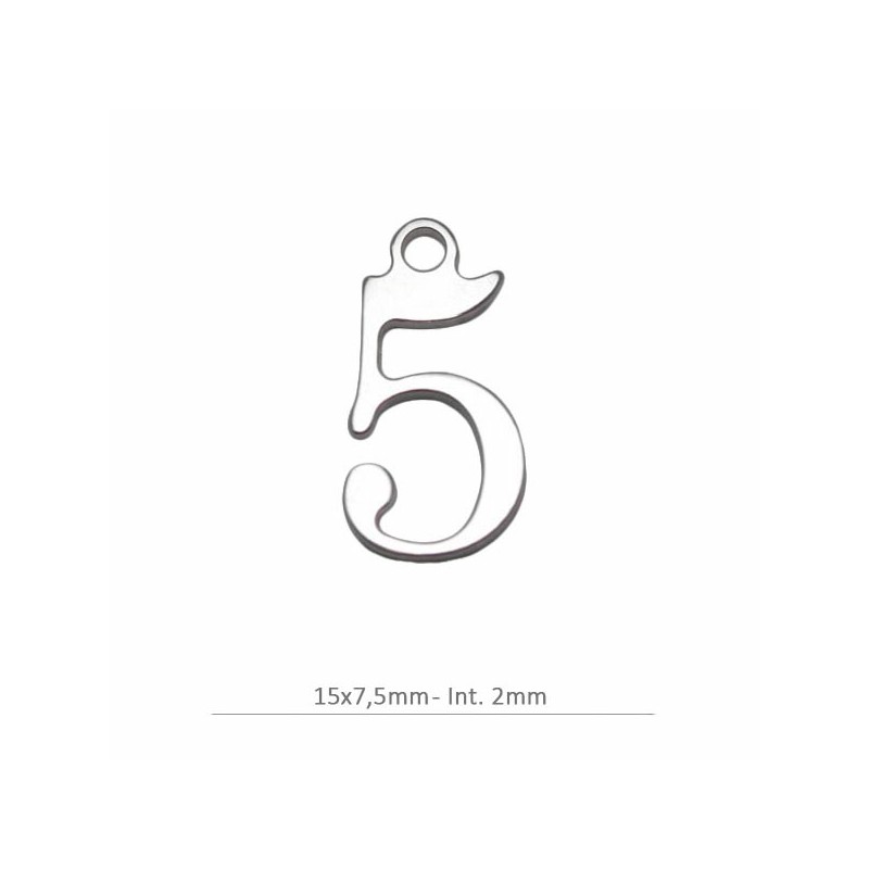 Colgante número 5 en plata de ley 925. Fabricado en España.