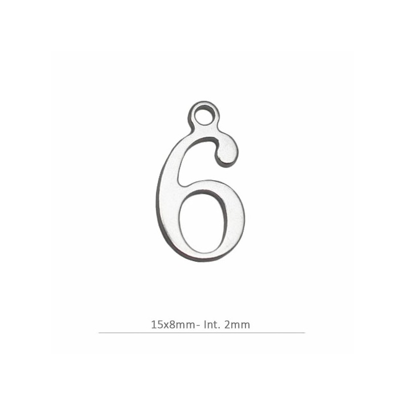 Colgante número 6 en plata de ley 925. Fabricado en España.