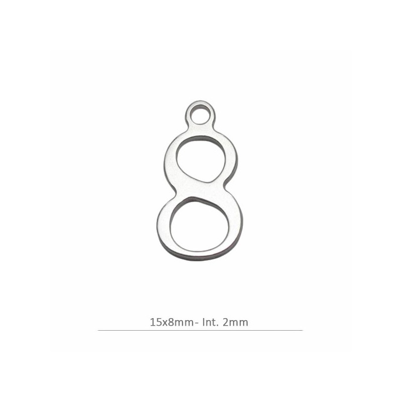 Colgante número 8 en plata de ley 925. Fabricado en España.